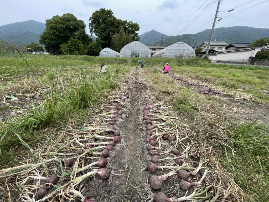 メインで作付けした中早生種(赤たまねぎ)と晩生種の収穫に入りました!