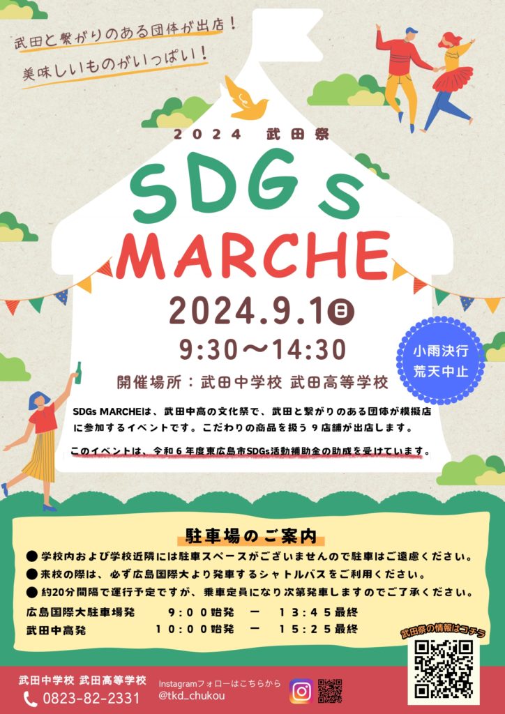 今年も、武田中学校武田高等学校の武田祭、SDGsマルシェに出店させていただきます。
