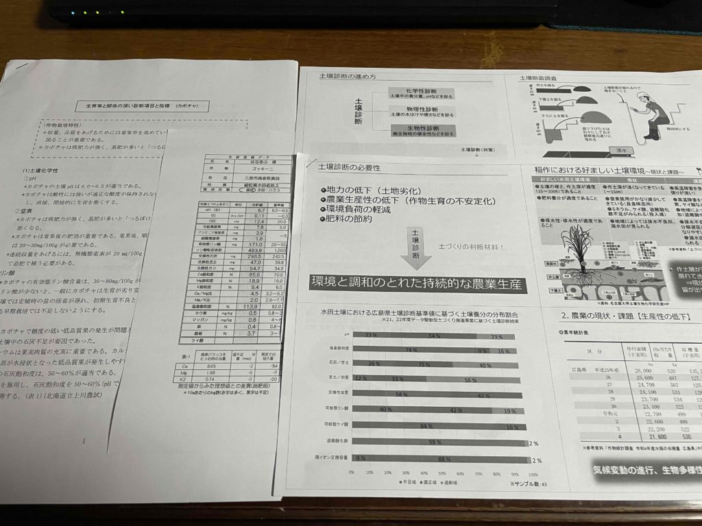 土壌診断の必要性、実習畑の栽培概要、化学性分析結果についての情報を共有させていただいた後、