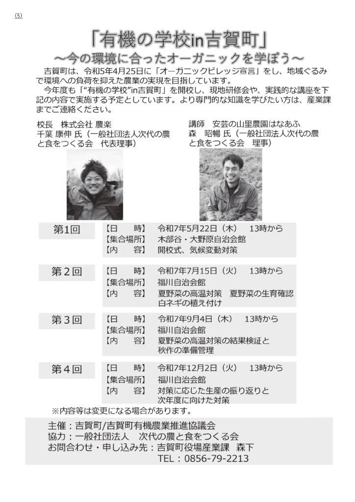 その他、よしわ有機農園・福田農場長の有機農業塾も開催中です!