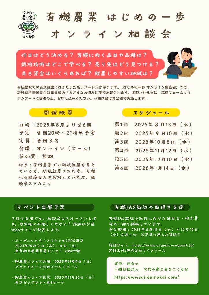 8月より全6回開催 有機農業はじめの一歩 オンライン相談会