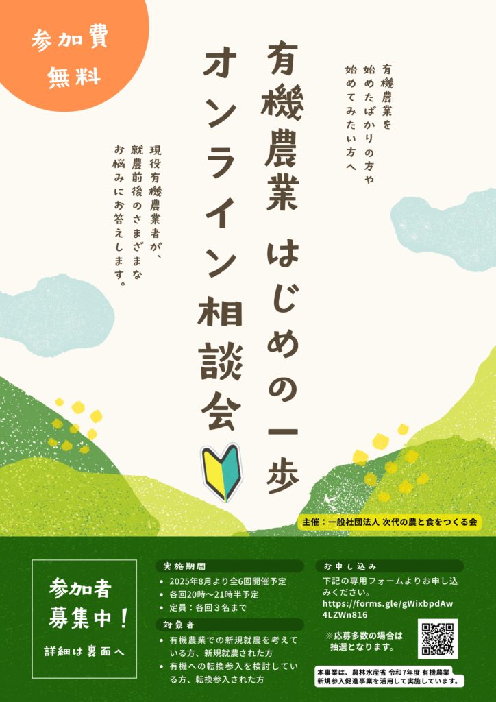 有機農業はじめの一歩 オンライン相談会では、「次代の農と食をつくる会」に所属する現役有機農業者をはじめとして、