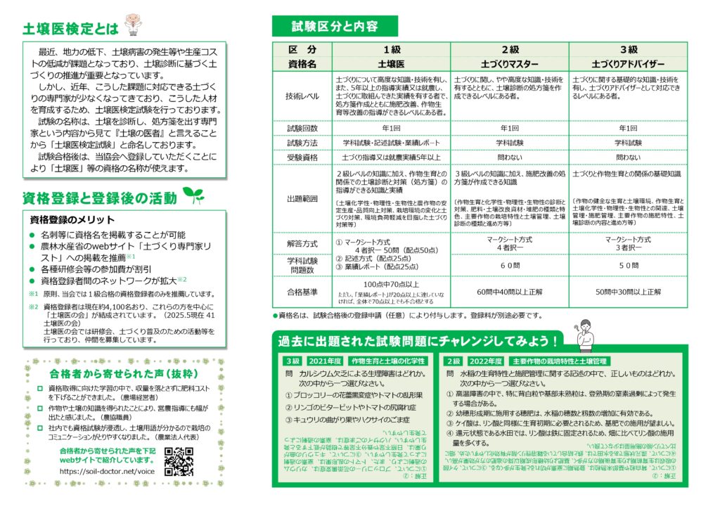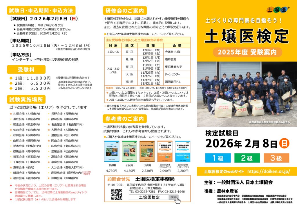 2026年2月8日(日曜)に、土壌医検定試験が行われます。